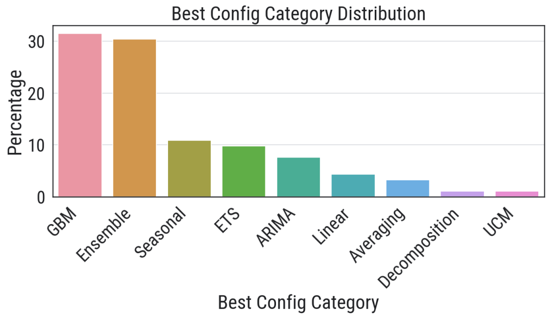 图 4:系统发现的成功预测方法的分布。梯度提升方法(GBM)和集成方法在各种预测任务中是最常成功的策略。