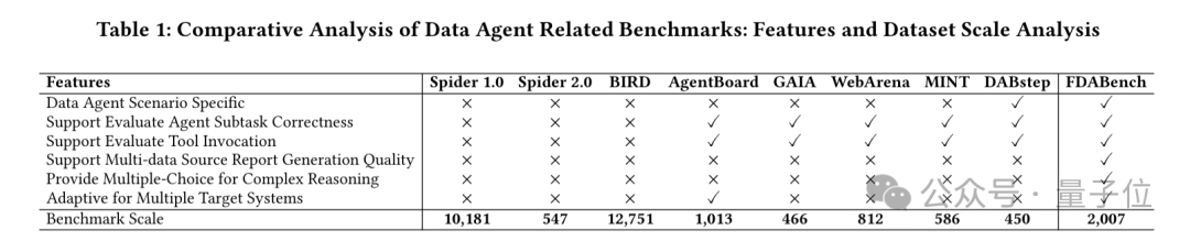 为应对这些挑战,团队提出了FDABench,这是首个专门为评估多源数据分析场景中的智能体而设计的数据智能体基准。
