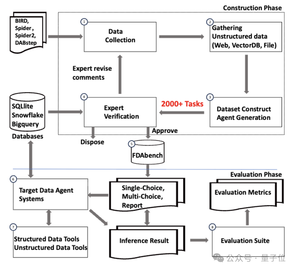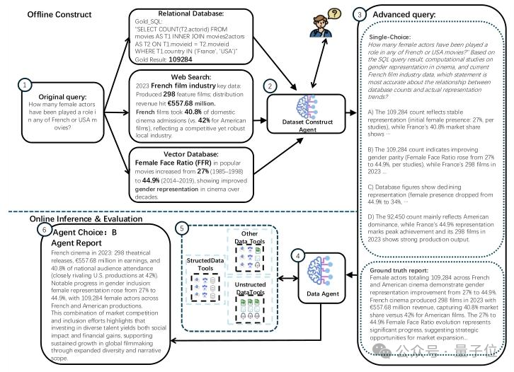 该基准横跨50+数据领域、设置了多种难度等级和任务类型,还独创了Agent-Expert协作框架,确保测试用例质量和数据一致性,同时支持Data Agent、RAG、语义算子以及四种典型Data Agent工作流模式。