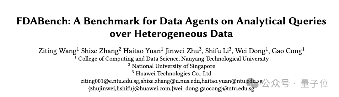 南洋理工大学、新加坡国立大学携手华为开源推出首个专门针对数据智能体(Data Agents)异构混合数据分析的综合性基准测试FDABench。