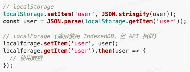 - localForage:使用类似 localStorage 的简单 API,但底层利用 IndexedDB