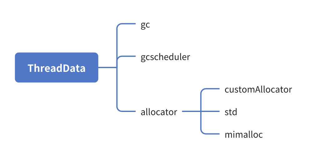 总结一下,ThreadData 在每个线程内部定义了内存分配器和 GC,关于内存分配器我们后续分析。