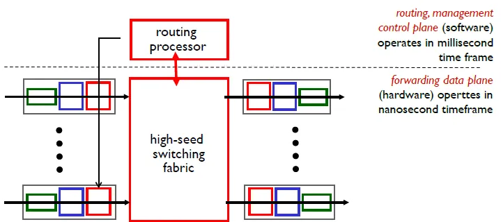 - 在一个路由设备里,转发是最重要的工作,它具备最高的优先级,数据平面(data plane)的设计核心就是高效转发,如何在最短的时间里处理最多的包,往往使用高效内存管理、队列管理、超时管理等技术实现在硬件里;