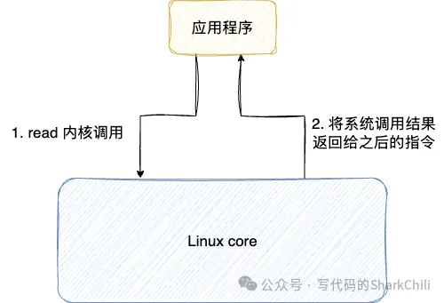 这其中open和read调用都涉及进程上下文切换调用阻塞等待结果并返回: