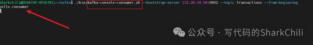 ./bin/kafka-console-consumer.sh --bootstrap-server your-ip:9092 --topic transactions --from-beginning