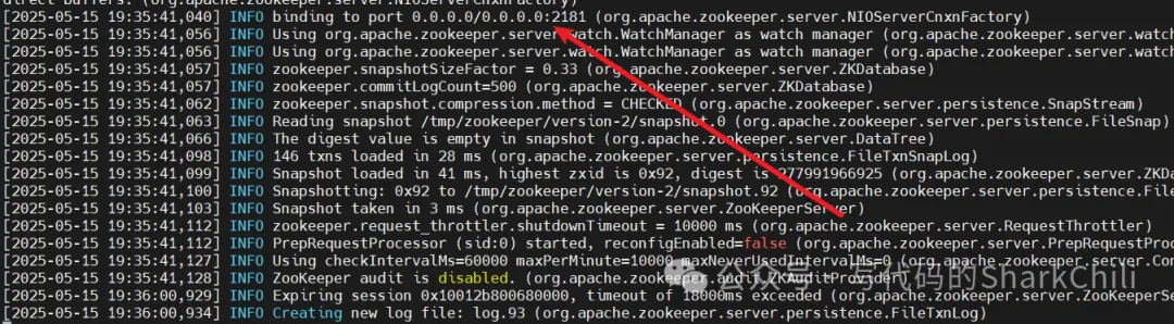 完成上述步骤之后,通过bin目录的zookeeper-server-start.sh脚本启动注册中心ZooKeeper,观测控制台启动日志确保无误后,可以尝试后台启动: