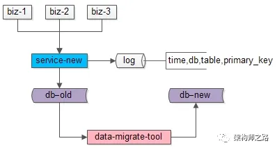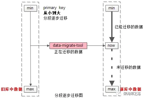 步骤二:研发一个数据迁移工具,进行数据迁移。这个数据迁移工具在本文中已经出现第三次了,把旧库中的数据转移到新库中来。