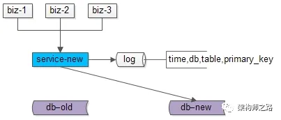 - 服务进行升级,记录“对旧库上的数据修改”进行新库的双写;