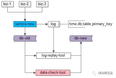 步骤四:在持续重放日志,追平数据的过程中,研发一个数据校验的小工具,将旧库和新库中的数据进行比对,直到数据完全一致。