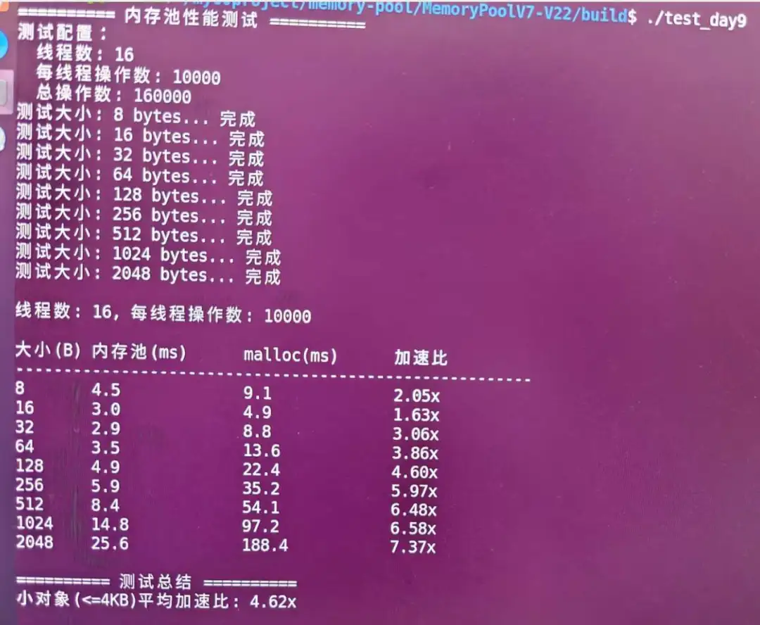 最近我从0到1实现了一个高性能内存池,经过严格的压测验证,在8B到2048B的分配释放场景下,性能相比传统的malloc/free平均快了4.5倍!