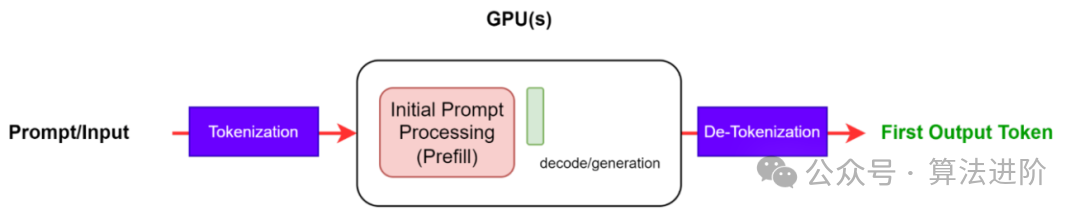 在预填充阶段,也可以理解为输入阶段。LLM处理输入token以计算中间状态(keys和value),用于生成“第一个”token。每个新的token都依赖于所有先前的token,但由于输入的全部已知,因此在运算上,都是高度并行化矩阵运算,可以有效地使用GPU。