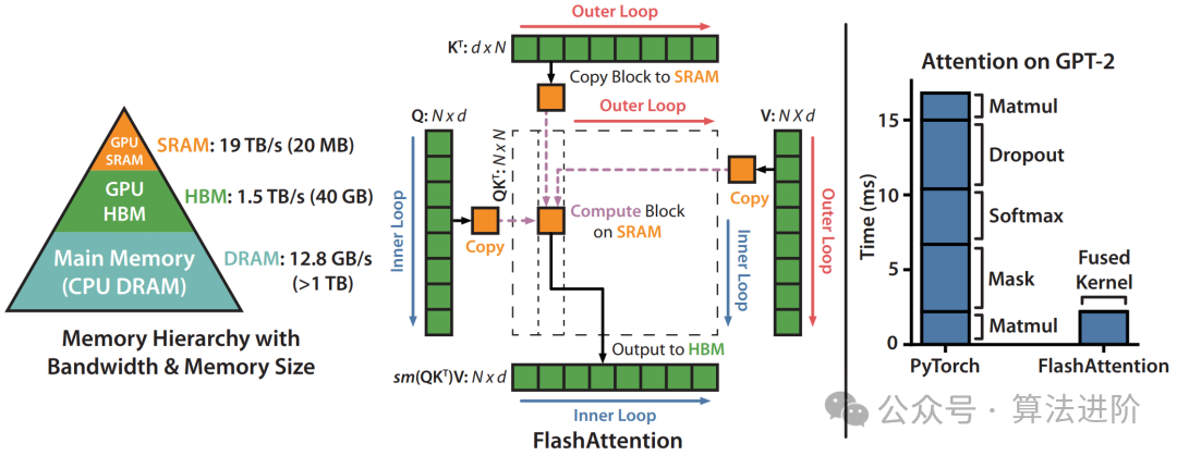 一种非常流行的融合是「FlashAttention,这是一种 I/O 感知精确注意算法」,详细信息请参阅:https://arxiv.org/abs/2205.14135。精确注意力意味着它在数学上与标准多头注意力相同(具有可用于多查询和分组查询注意力的变体),因此可以无需修改即可交换到现有的模型架构,甚至是已经训练的模型。