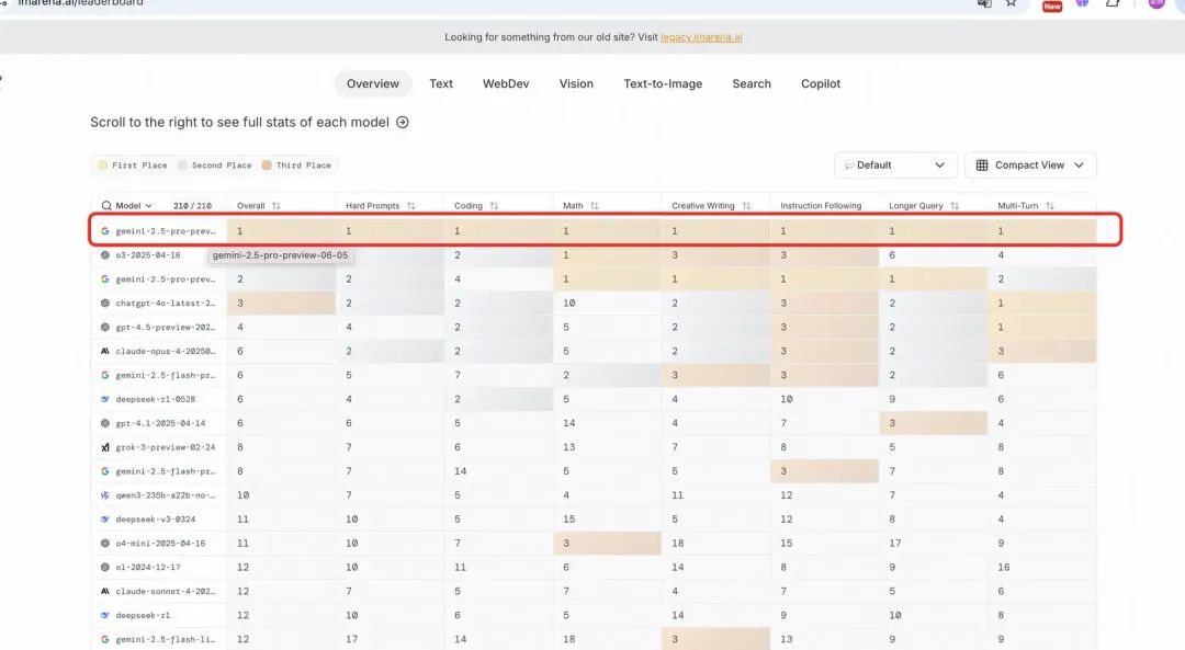 Gemini 2.5 pro preview 0605最近屠榜了,样样都是第一,直接看下图。