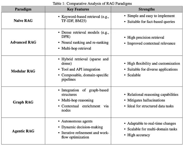 本节考察了RAG范式的进展,呈现了关键发展阶段:朴素RAG、高级RAG、模块化RAG、GraphRAG和智能体式RAG