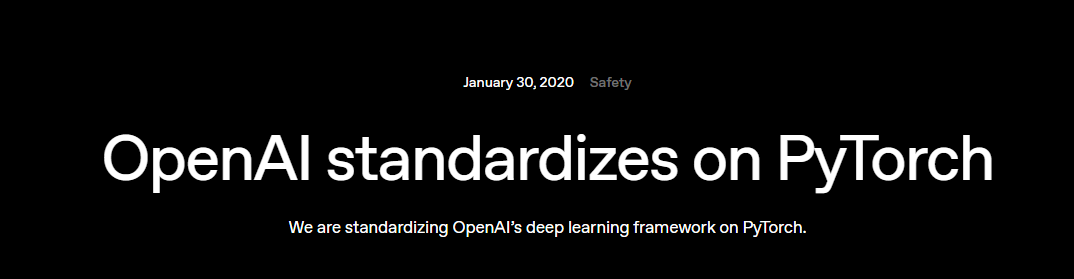 OpenAI早在2020年就官方声明中就明确表示将研究标准化在 PyTorch 平台上,来提高研究迭代效率。