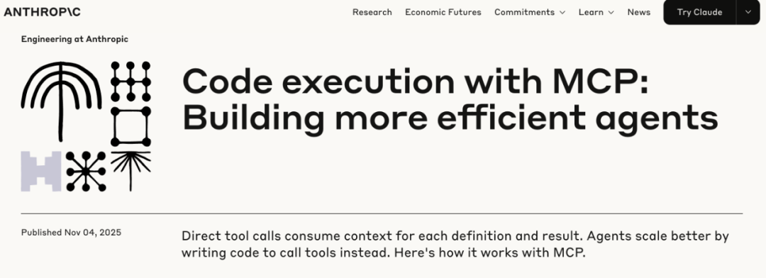 简单来说Anthropic详细阐述了一种名为 “代码执行”的新范式,它建立在模型上下文协议(MCP)之上,旨在从根本上解决AI Agent的效率问题