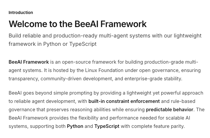 项目地址:https://github.com/i-am-bee/beeai-framework