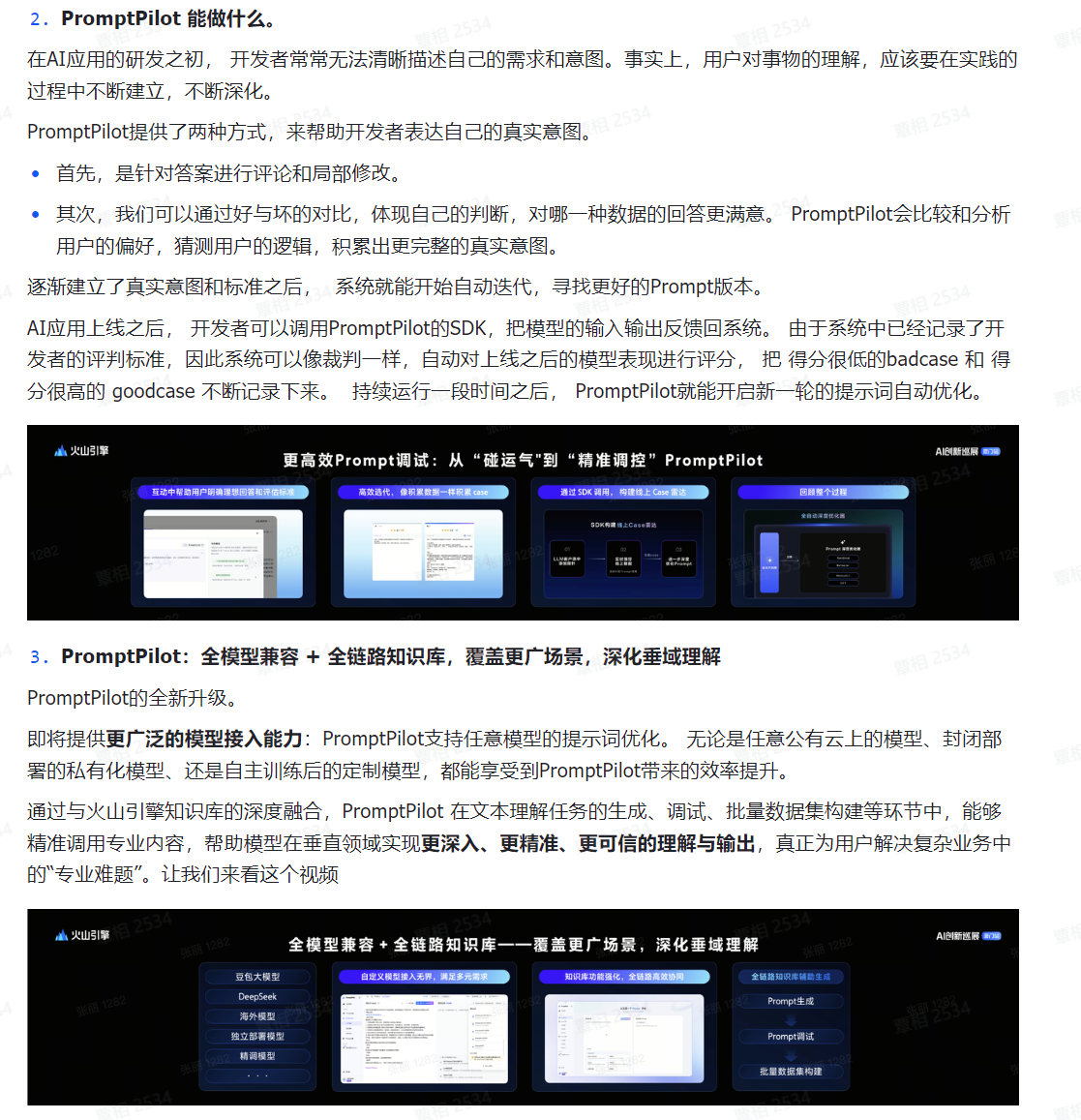 更多资料请看官方PromptPilot用户手册:https://www.volcengine.com/docs/82379/1399495