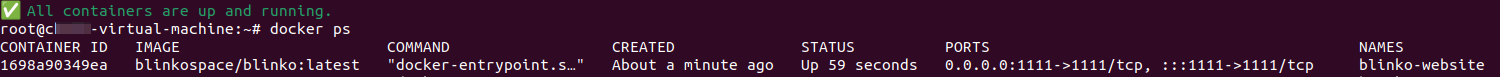 容器启动后,会提示所有容器已经启动(All containers are up and running.)