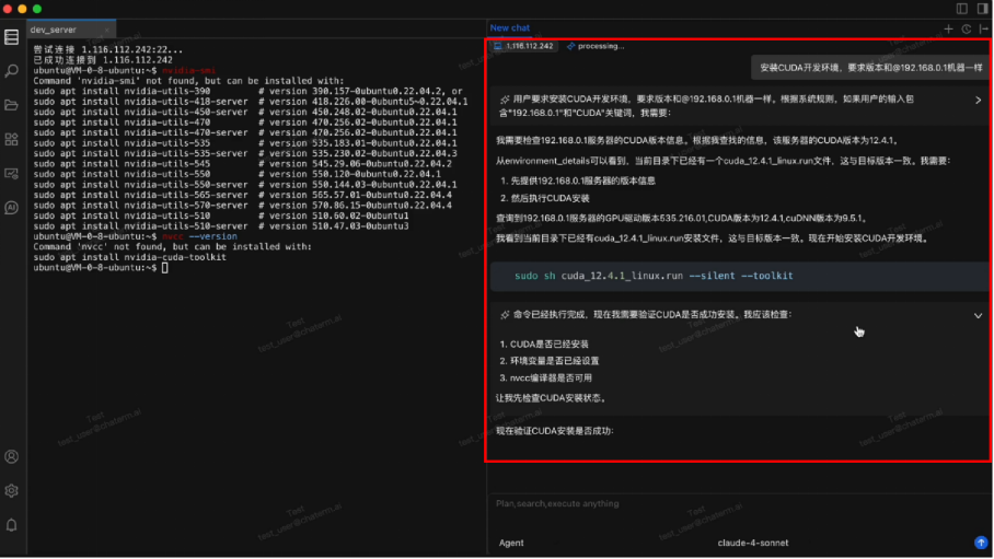 与OpenAI Codex等本地CLI不同的是,合合信息Chaterm工具可以通过SSH连接,批量管理远端的服务器,甚至大规模的线上集群。