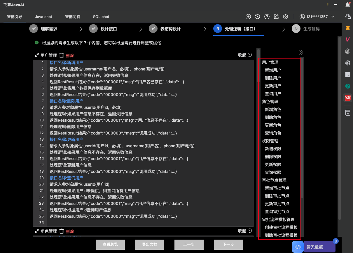 基于拆解后的需求,AI能自动生成规范的接口设计: