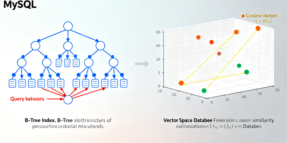在RAG系统中,文档块通过嵌入模型处理后会生成768维、1536维甚至更高维度的向量,下一步需要快速根据用户查询向量,找到最相似的文档向量。很多开发者会想:“我已有MySQL,直接存进去不行吗?”答案是:小规模测试可以,生产环境必踩坑。