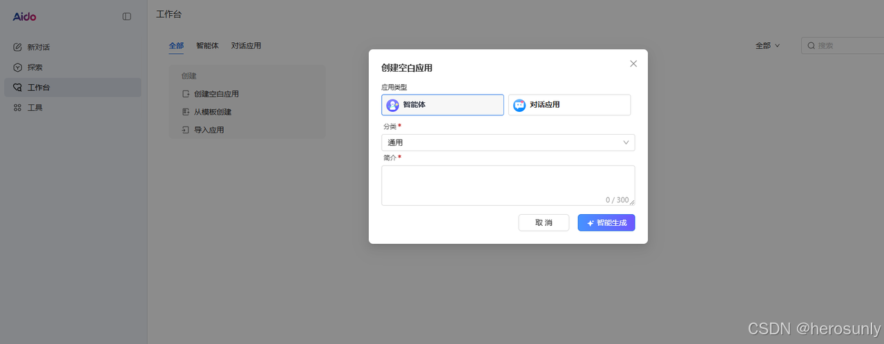 在弹出的类型选择中,我们可以选择 “智能体” 或 “对话应用”。