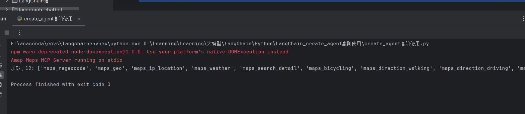 下面笔者通过使用 create_agent 接入高德地图 MCP 服务的完整案例,来学习如何在 LangChain 中使用 MCP。