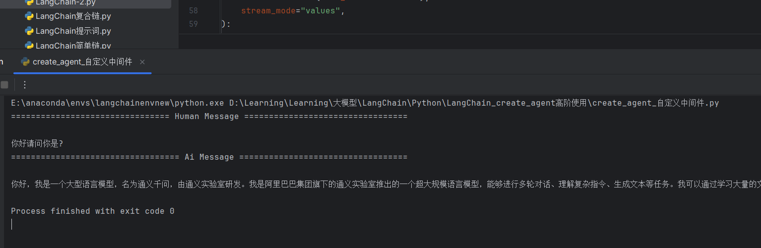 要解决这个问题,我们需要利用 create_agent 的 memory 机制。create_agent 创建的智能体会将所有消息保存在一个 messages 列表中,可以通过将对话历史存储到系统内存中来维持对话的连续性(在打印的时候通过result['messages']取出列表中的数据)。