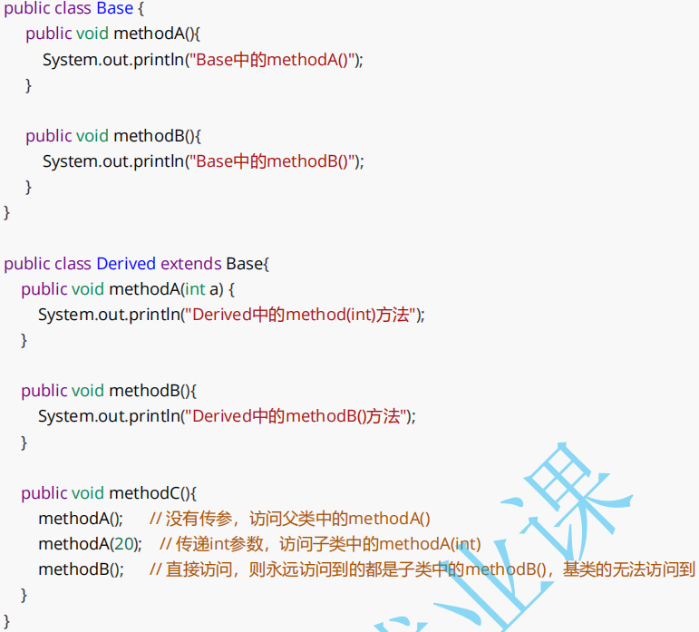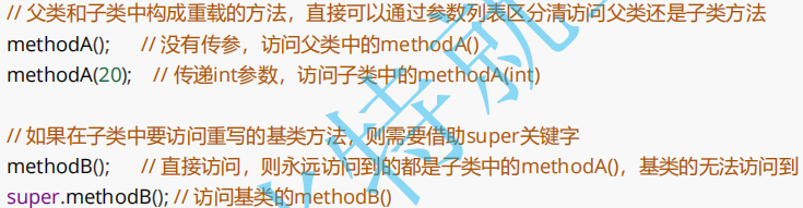 上述代码省略部分:父类中有无参的A、B方法,子类中有有参的A、无参的B方法