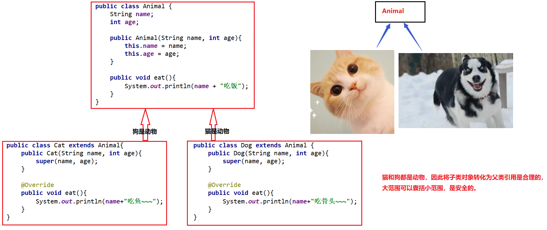 父类给到子类,此时注意强转。为了安全起见,引入了instanceof关键字: