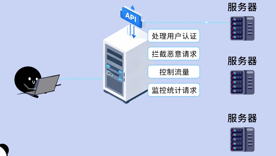 你点了点头:哇哦,这样一来,如果我后端有多个服务,不用给每个服务单独写这些功能了。