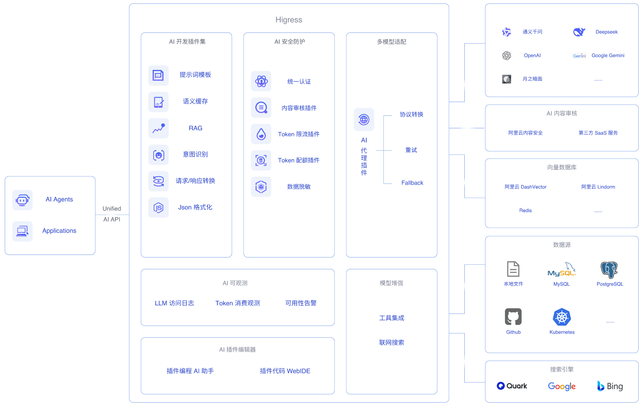 4)Higress AI:阿里云开源的 AI 网关,支持 100 多种大模型的统一协议转换,提供语义缓存、令牌限流、MCP 转换等企业级功能,适合有复杂 AI 集成需求的企业。