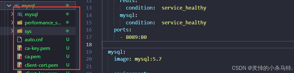 数据持久化:./mysql:/var/lib/mysql — 将数据库文件保存在本地的 ./mysql 目录下,即使容器删除,数据也不会丢失。