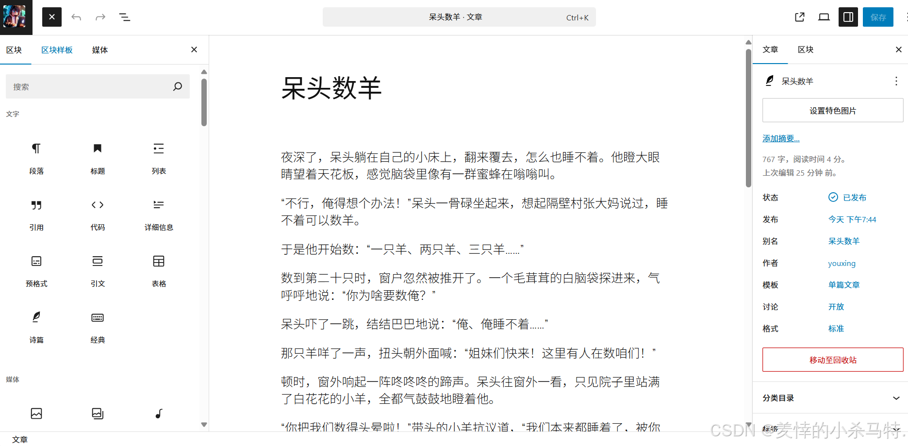 是什么:全球最流行的开源内容管理系统(CMS),您可以通过它轻松地发布文章、管理页面、安装主题和插件,构建功能丰富的博客或网站。