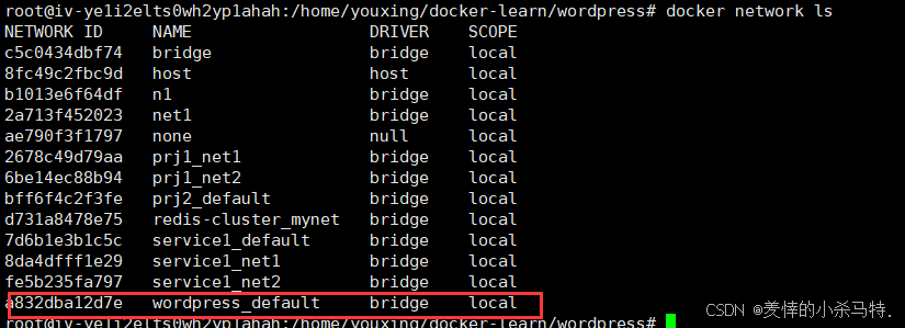 - 这里就是mysql数据库容器与对应的wordpress容器进行通信的bridge网络。