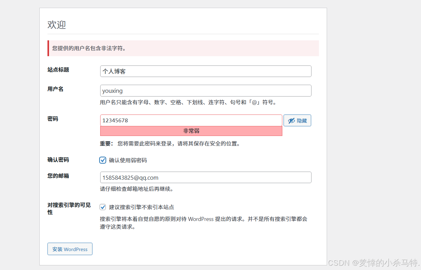 MYSQL_DATABASE: wordpress:容器启动时自动创建的数据库名称。