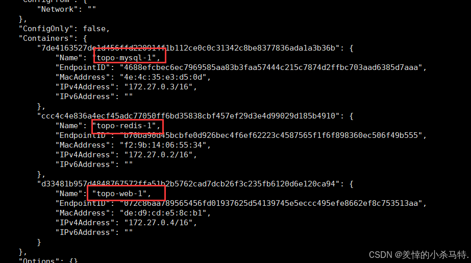 - 查看对应的网络详情,发现这几个容器确实被连接好了。