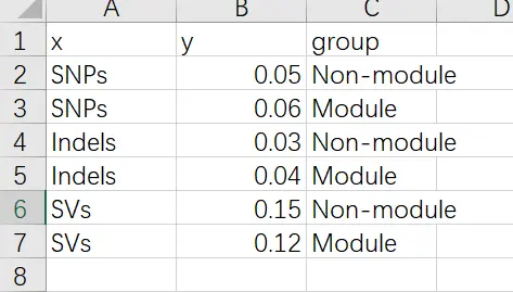 这里并没有提供箱线图的分组数据,这里我自己随便构造一列分组数据了,所以最终结果可能和原图不一致