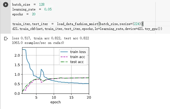 d2l.train_ch6(net,train_iter,test_iter,epochs,lr=learning_rate,device=d2l.try_gpu())