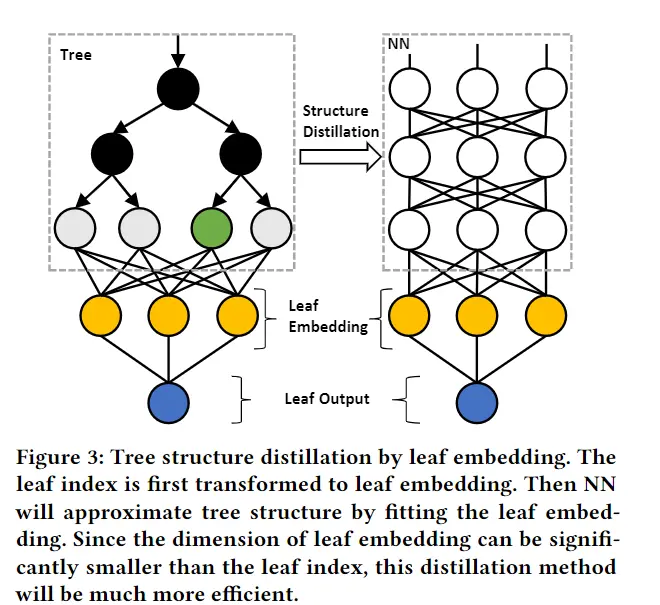 所以一个很朴素的想法是,结合这树模型+神经网络模型的优势。比如通过NN学习文本的嵌入特征后,输入树模型继续学习(如word2vec+LGB做文本分类,可见文章:NLP建模全流程)。 或者是,树模型学习表格数据后,输出样本的高维个叶子节点的特征表示,输入DNN模型。