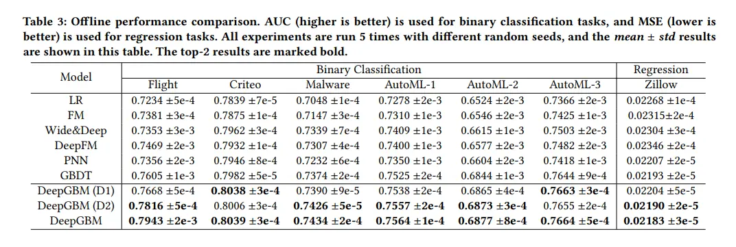 结合论文《Revisiting Deep Learning Models for Tabular Data》的观点,集成树模型通常擅长于表格数据这种异构数据集,是实打实的表格数据王者。集成树模型中的LightGBM是增强版的GBDT,支持了分类变量,在工程层面大大提高了训练效率。关于树模型的介绍,可见之前文章:一文讲透树模型。