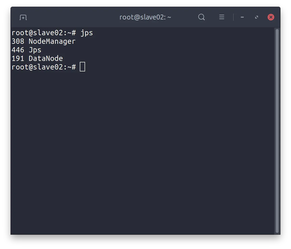 $ docker run -it -h slave02 --name slave02 ubuntu-hadoop:1.0