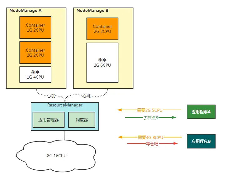 主要是为了合理调度,比如一台机器有8个CPU、8G内存,某个应用程序申请了container占用了4个CPU和4G内存,这台机器剩余就是4个CPU和4G内存,下次再有任务时就可以根据剩余资源考虑要不要在这台机器上运行