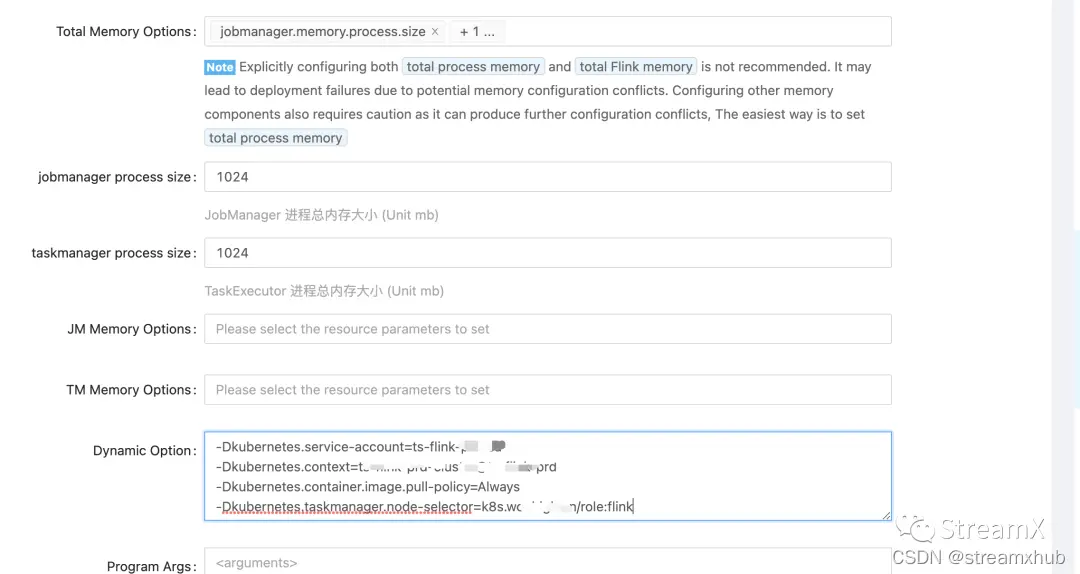 我们也可以指定资源,指定Flink Run中的动态参数Dynamic Option,甚至参数可以整合pod template