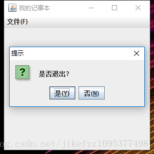 int result = JOptionPane.showConfirmDialog(null, "是否退出?","提示",