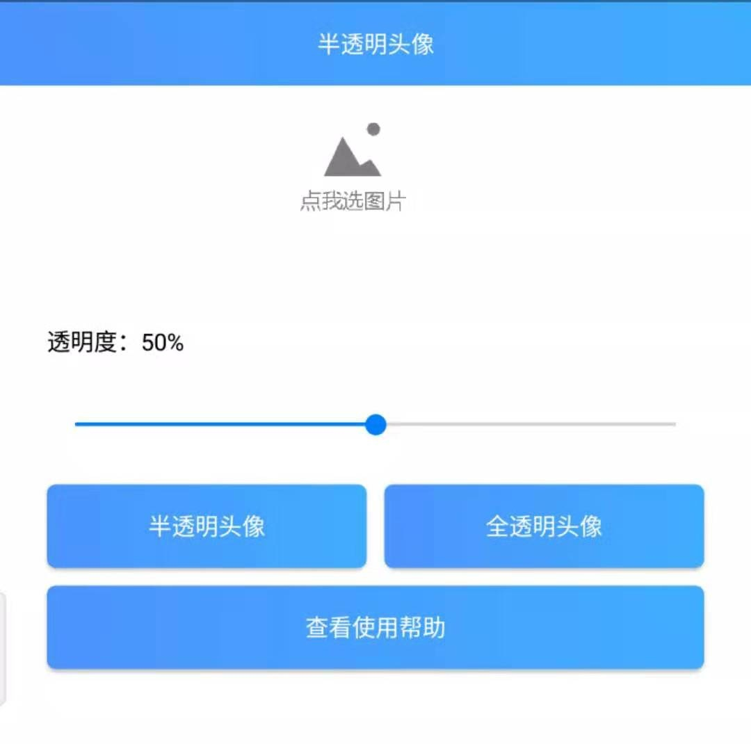 软件界面非常简洁,功能非常简单,可以设置半透明头像和全透明头像~也可以设置透明度!