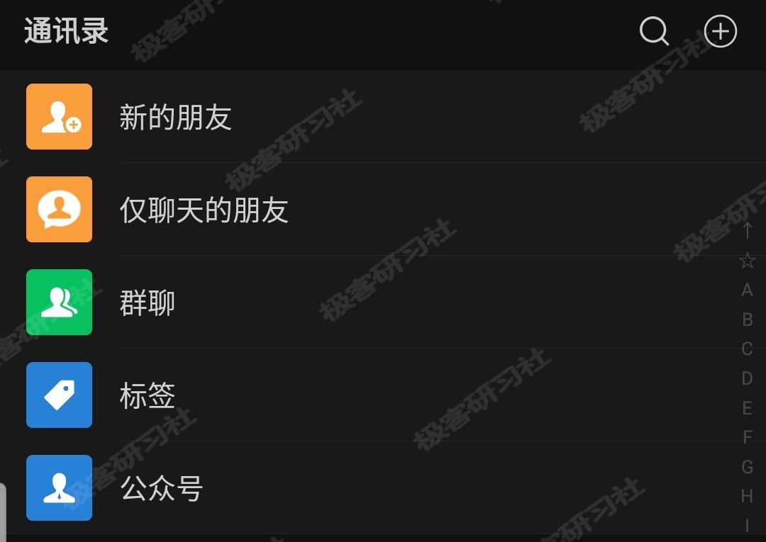 入口与群聊、标签、公众号都在通讯录的顶部,而且排在最前面~排序上也说明了其重要性,权限为“仅聊天的朋友”被独立分为一组,看上去直观管理起来方便!
