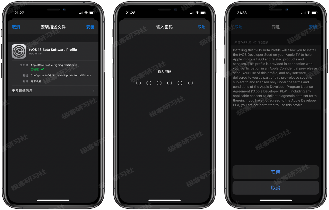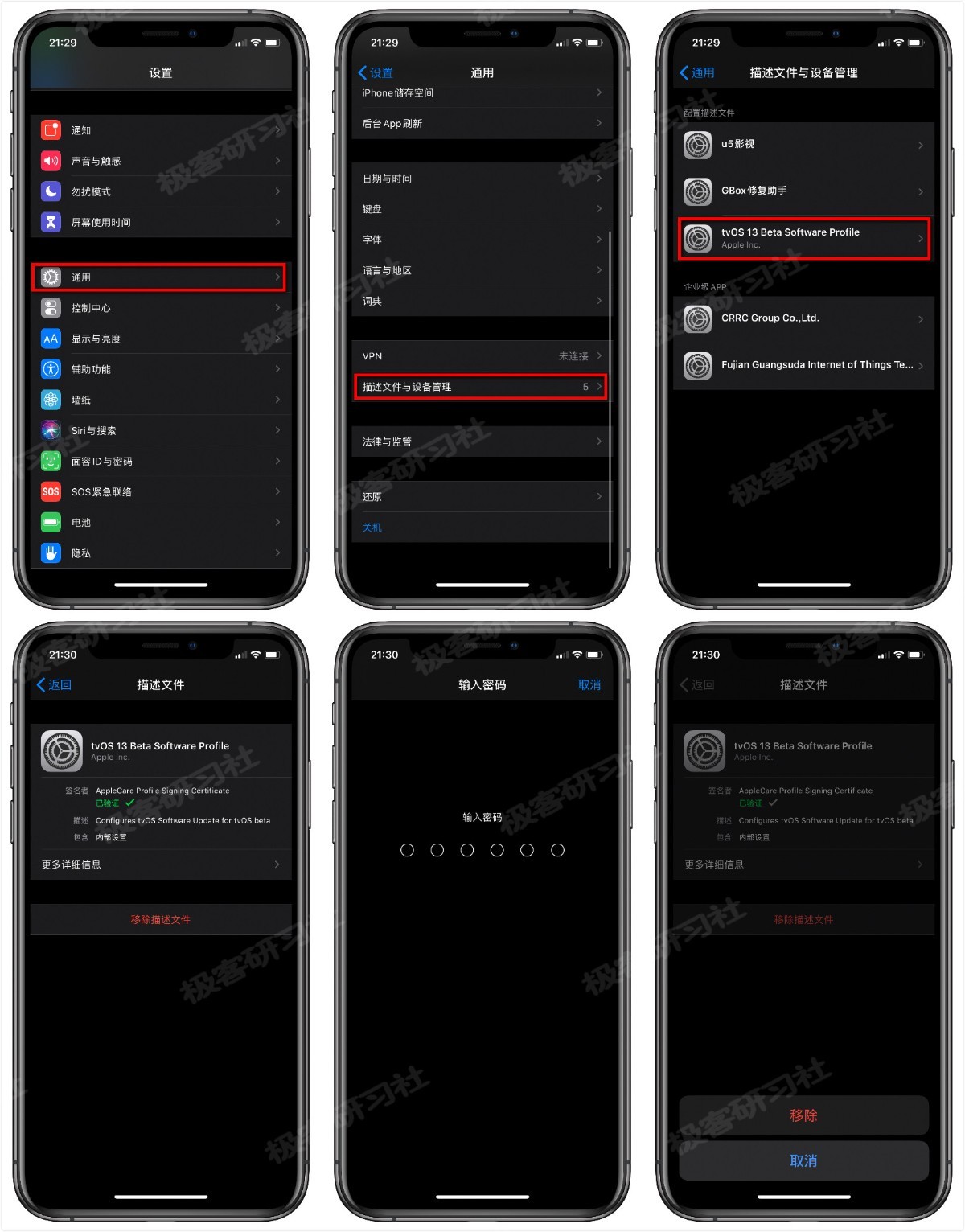 具体步骤:打开设置 - 通用 - 描述文件与设备管理 - tvOS 13 Beta Software Profile ,然后点击底部的“移除描述文件”,再输入锁屏密码移除描述文件,移除完成以后,我们再去检查更新就可以啦!