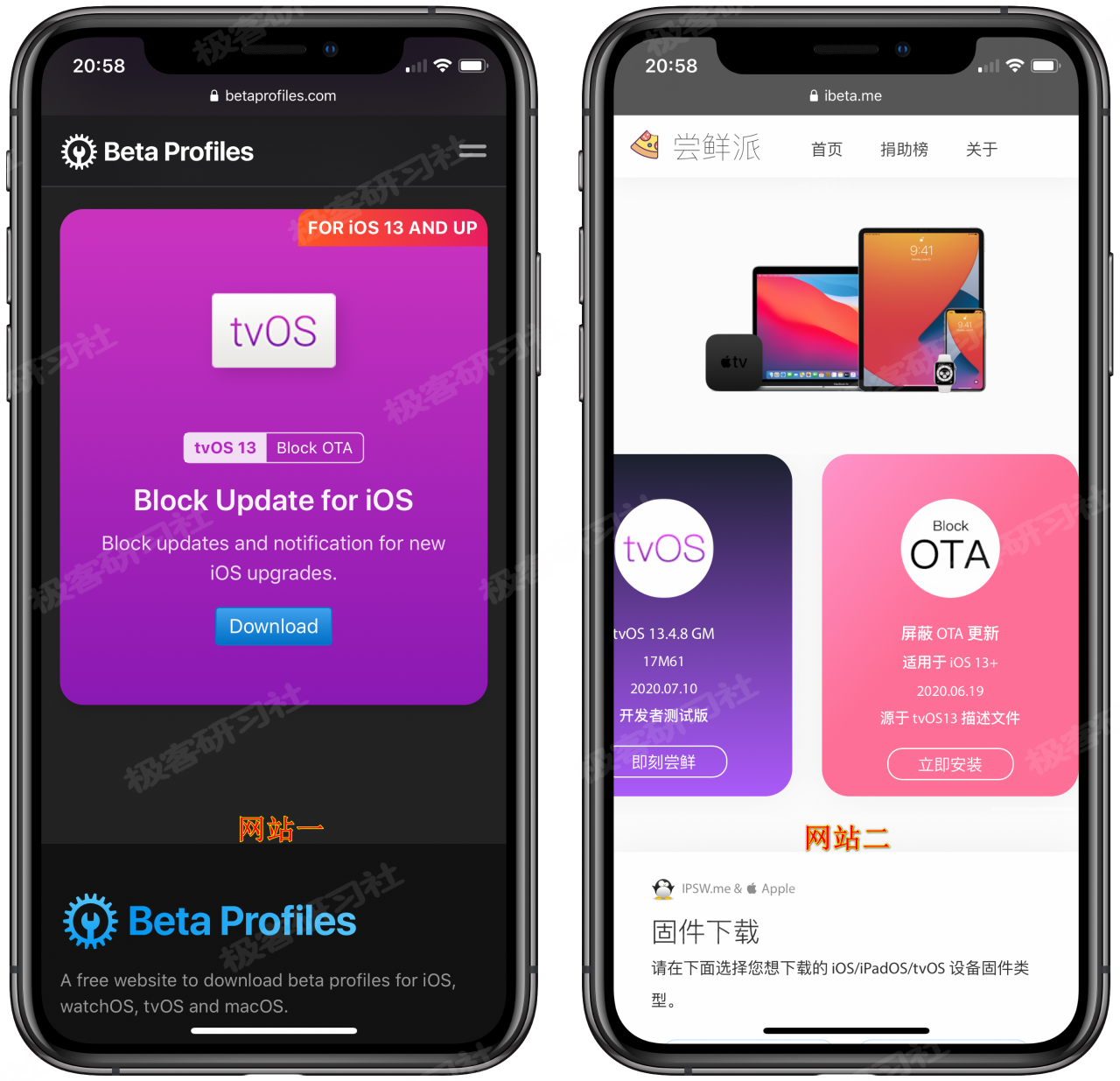 这里,我们提供两个可以下载描述文件的网站“Beta Profiles”和“iBeta 尝鲜派”